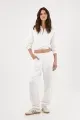 Fit & Styling Fit relajado que funciona solo o en conjunto: úsalo ligeramente subido y apenas por dentro con shorts a juego en el mismo tono para un set monocromático fresco, perfecto para la ciudad y para un día que no se detiene; un buzo blanco mujer que responde a tu ritmo.