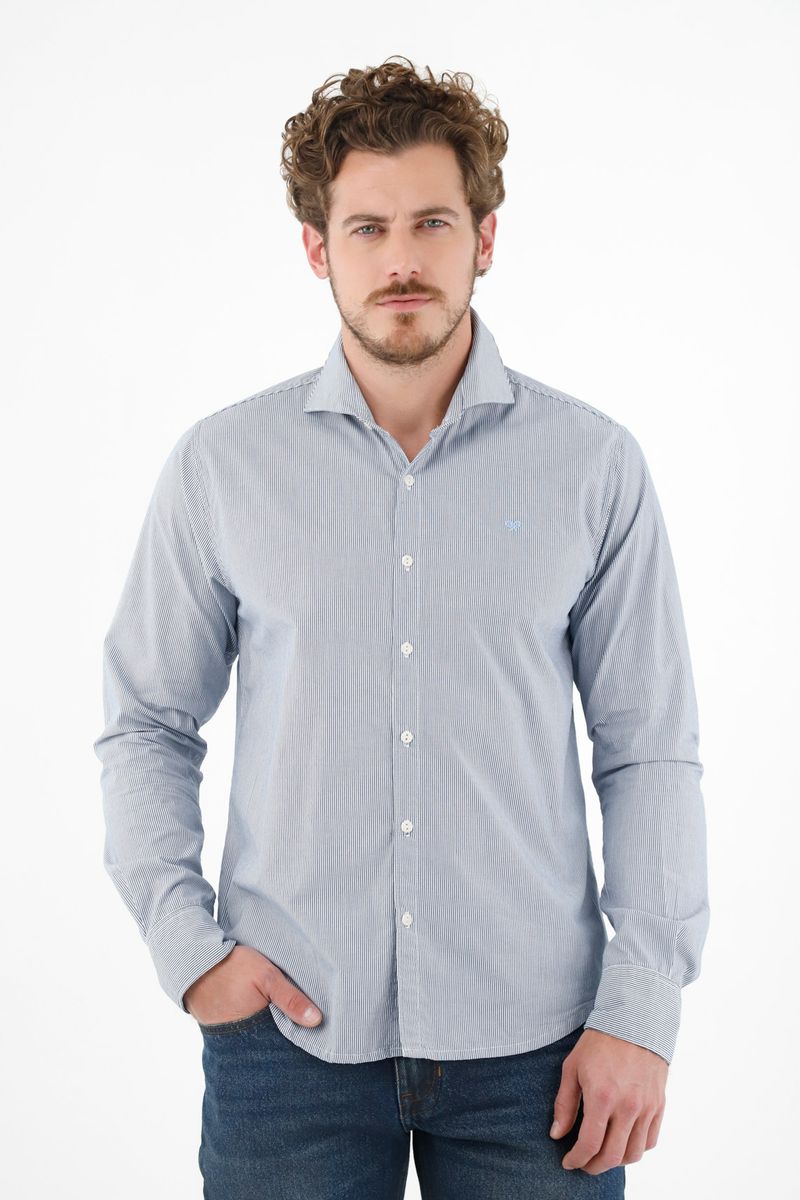 ¡El estilo permanece cuando se trata de TNS! Una camisa ideal para los planes importantes en los que la originalidad y la moda, merecen ser protagonistas. Características - Color: azul -Manga larga -Perilla de botones -Cuello francés con plumilla -Diseño preteñido a rayas -Raqueta bordada en punto corazón al contraste -Botón en puños -Material: Algodón 100% Sobre el fit Haz que tus looks nunca pierdan la elegancia y que tus eventos formales destaquen con esta camisa.