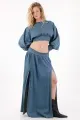 Ropa MujerFaldasFalda larga denim con aberturas azul para mujer