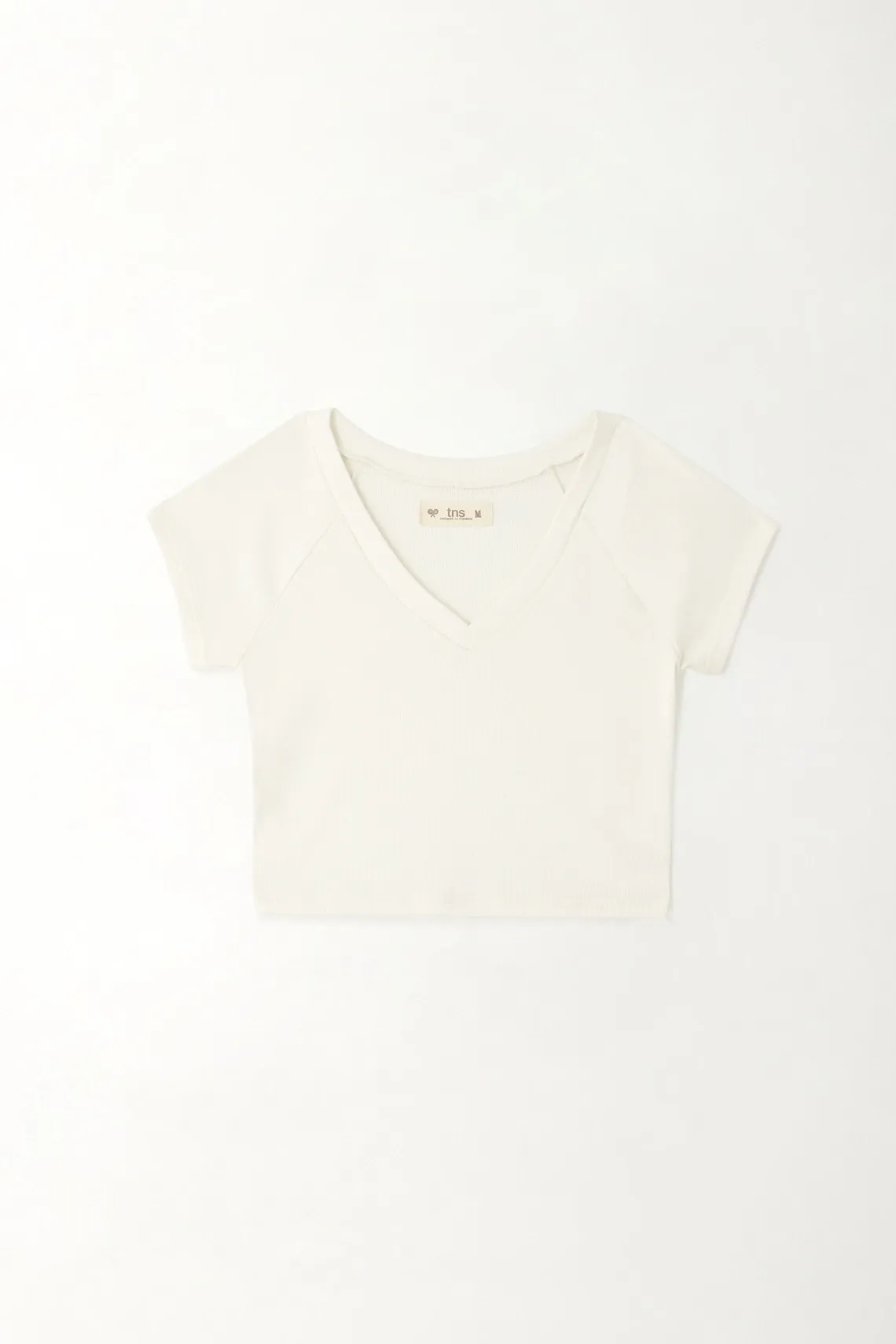 Ropa MujerT-shirtsCamiseta tipo crop amarilla para mujer